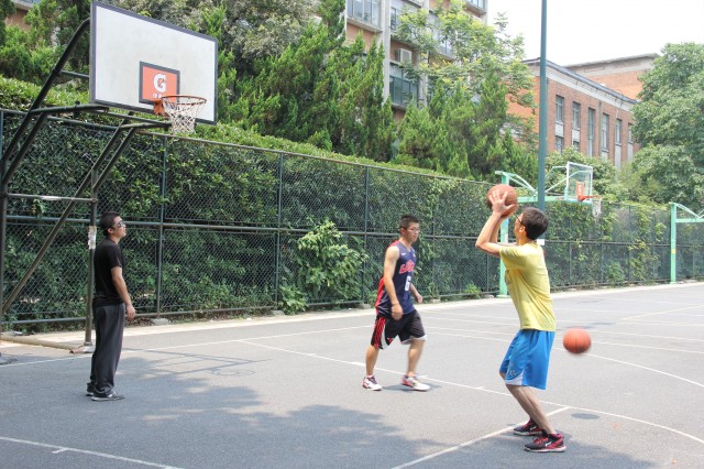周日(15日)上午8点半,同样在玉泉篮球场,五支队伍参加了3v3篮球赛。经过抽签分组,处于小组赛A组的是“落汤鸡胡扔”队、“杨陈肖”队和“西溪实验室二”队,B组是“小猫爱鱼刺”队和“西溪实验室一”队。经过循环小组赛A组“落汤鸡胡扔”队以小组第一出线,在淘汰赛中对抗B组第二的“小猫爱鱼刺”队;“杨陈肖”队以A组第二的成绩出线,迎战B组第一的“西溪实验室一”队。经过紧张激烈的淘汰赛,B组两支队伍双双获胜,再次在决赛中相遇。这一战,比分咬得很紧,一度交替上升,半场休息时,由孙浩伟带领的“小猫爱鱼刺”队和由吴森森带领的“西溪实验室一”队战成9比9平。下半场,“小猫爱鱼刺”队继续发力,最终以19比15锁定胜局,成为本届趣味运动会3V3篮球赛的冠军队伍。最后,冠军队伍成员孙浩伟、王曦、徐鹏飞等人用冠军奖金请全体参赛人员和工作人员吃西瓜,充分发扬了“友谊第一、比赛第二”的作风,获得大家一致好评。