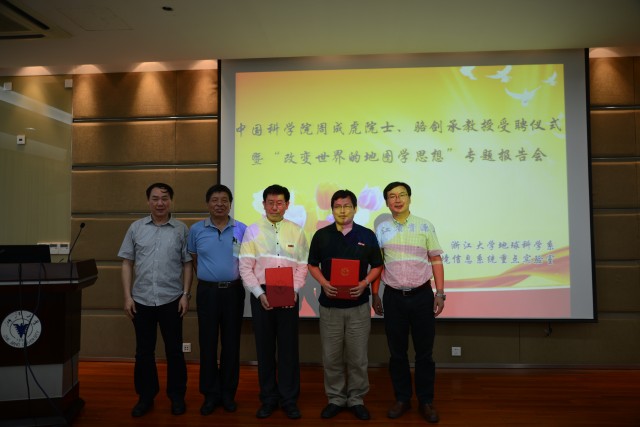 2014年6月15号下午两点,中国科学院周成虎院士、骆剑承教授受聘仪式暨“改变世界的地图学思想”专题报告会在威尼斯7026官网紫金港校区校友楼紫金港厅隆重举行,原威尼斯7026官网研究生院副院长杨树锋教授,威尼斯7026官网地球科学系主任陈汉林教授以及威尼斯7026官网地球科学系部分师生共120余人参加了本次活动,活动由浙江省资源与环境信息系统重点实验室主任刘仁义教授主持。
