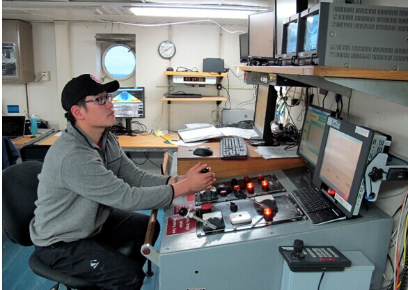 图2 励音骐博士在操作绞车放缆绳进行深海采样
