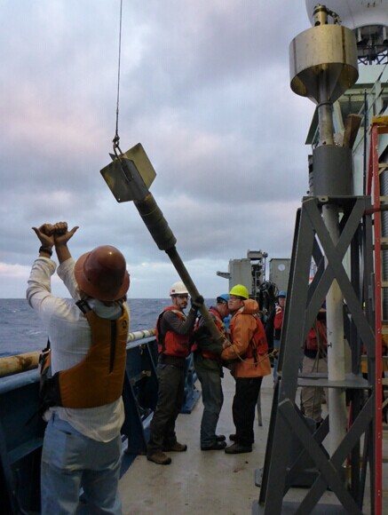 2014年8月28日至9月11日,我校地球科学系博士后励音骐搭乘美国亚特兰蒂斯号(R/V Atlantis,航次号AT26-19)海洋科学考察船参与完成了对东太平洋地区胡安·德富卡海岭(Juan de Fuca Ridge,北纬44°45′,西经131°00′)的一系列科学考察任务。本次大洋科考承担的是由美国国家科学院院士、哈佛大学地球和行星科学系Charles H. Langmuir教授所负责的国际重大基础科学研究项目,旨在通过系统采集并分析胡安·德富卡海岭地区海底沉积物和大洋玄武岩的地球化学和同位素特征变化,来研究近2百万年以来海底火山热液活动与海平面变化之间的相互关系,进而探讨大规模洋中脊火山作用对全球气候变化和二氧化碳循环作用的影响。项目团队主要由来自美国哈佛大学、哥伦比亚大学、俄勒冈州立大学和英国牛津大学等院校的24名师生组成,励音骐博士在该团队中主要承担海底玄武岩玻璃的采样和收集工作。