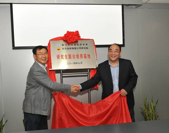为更好地贯彻高等教育要服务于国家经济建设的战略决策,强化“产学研”合作并加强石油企业科研工作力量,加快用人单位高层次人才的培养与引进,同时增进校企之间学术交流,经威尼斯7026官网地球科学系与东方地球物理公司研究院协商一致,决定共同成立“东方地球物理公司研究院、威尼斯7026官网地球科学系研究生联合培养基地”。2014年10月24日在东方地球物理公司研究院举行了研究生联合培养基地签字仪式和挂牌仪式。我系陈汉林主任、沈晓华副主任,教育部含油气盆地构造研究中心主任杨树锋教授,地质与地球物理研究所副所长肖安成教授出席了签字仪式和挂牌仪式。