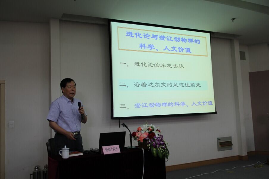 舒院士结合自身在数十年学习研究和2015年春节期间在加拉帕格斯群岛的考察学习的经历,给大家生动讲述了自身在学习方面经历和体会以及达尔文进化论的意义和内容。2015年的春节舒院士以科学顾问的身分,参加了一次到《物种起源》的发源地加拉帕格斯群岛进行的科学考察。“在旅途中,进一步感悟到行路会比读书更重要。行路使大家看到真实的世界,能获得直接的经验,是读活书。达尔文当年就是在接触大自然的实践中形成了自己的思想。”舒院士的话让大家动容,但他的行走比学习更重要的思想也深深留在同学们心中。在加拉帕格斯群岛的考察探险期间,舒院士拍摄了许多风景优美又富有教育意义的照片。在整个报告会中在展出这些照片的同时介绍着生物进化的故事。同学们被舒院士的幽默引得大笑,同时,也为舒院士朴实的演讲不由得数次鼓掌。