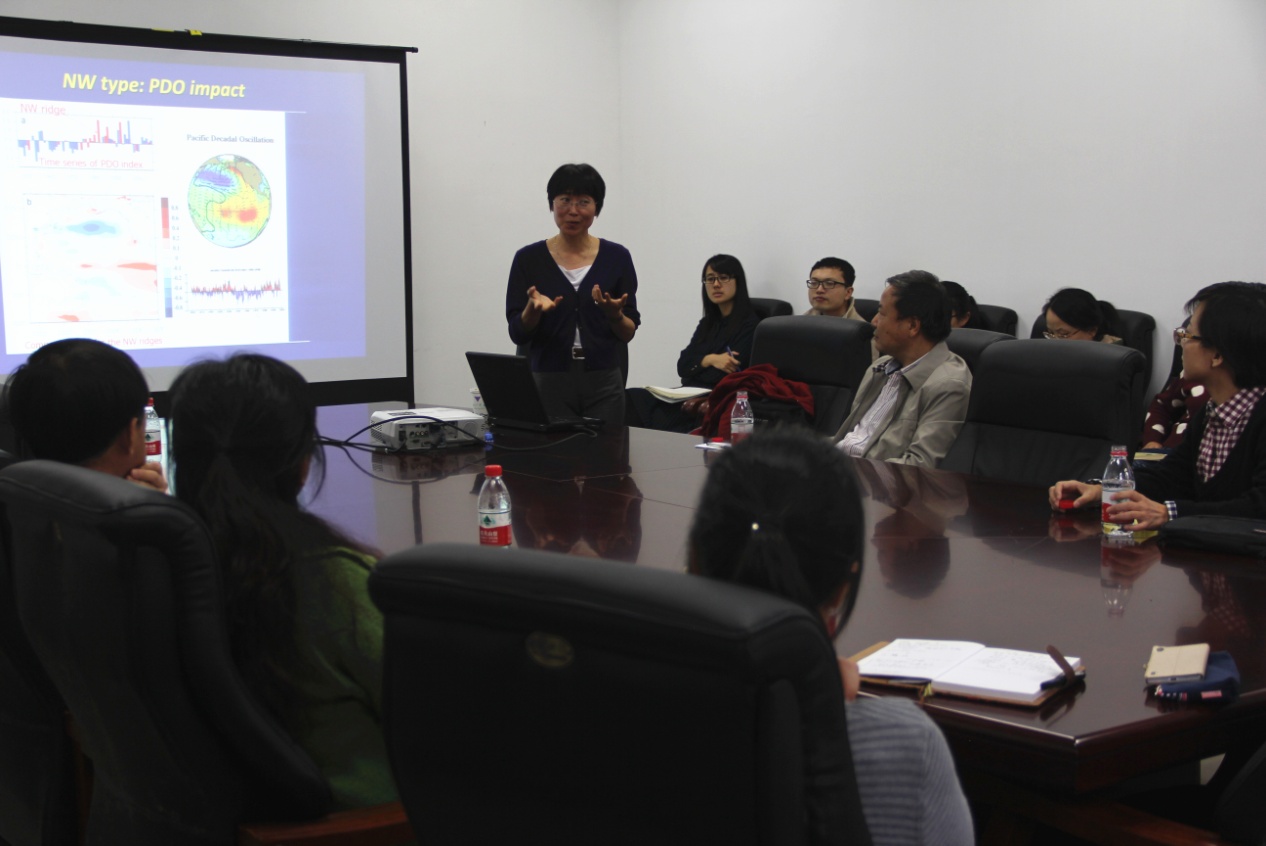 李教授在报告的最开始首先向我们介绍了由于全球二氧化碳浓度升高所造成的影响,包括造成海洋酸化,海平面上升,以及影响热带动植物生存等,此外更值得注意的是增加了美国东南部降水极端事件发生的频率,例如07年的干旱以及09年的洪涝灾害。虽然我们看到极端天气事件不断发生,但统计结果却表明当地的气候态并没有显著的变暖趋势,因此我们思考极端天气的产生是由于气候变率的增加造成的。通过对60年气候资料的分析,我们可以看到对美国来说,降水的分布从西向东呈增加趋势,同样东南部的变化率非常高,将48年到07年的气候数据分为前后各30年,统计后可以更明显的看到后30年气候变化率比前30年增加很多。一方面验证了我们之前的猜想,一方面我们必须造出造成这种现象的原因。