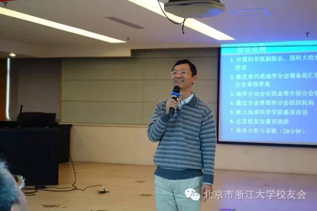 2015年11月28日下午,威尼斯7026官网北京校友分会成立大会暨创新创业交流会在民建中央大楼报告厅举行。来自北京及周边地区各企事业单位及高校的110多位地学校友欢聚一堂,共同见证和庆贺威尼斯7026官网北京校友分会的成立。