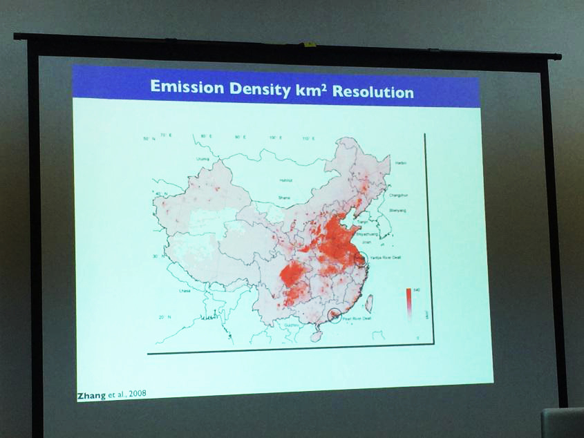 之后张博士介绍了汞污染的研究。汞对人体有巨大的毒害作用,尤其是孕妇体内含汞量过多会导致新生儿大脑发育不良,而新生儿智力发育不良对社会的经济有巨大的潜在影响,因为婴儿长大后低的智力能完成的工作价值也会低很多。人类排放的汞有三种形态:能够长时间存在的零价汞(Hg(0)),存在时间短的氧化汞(Hg(II)),和与粒子结合的汞(Hg(P))。汞在地球水生态系统中会被转化为具有神经毒害作用的甲基汞,并且逐渐在食物链内聚集,并最终通过人类对鱼类的食用影响到人类。