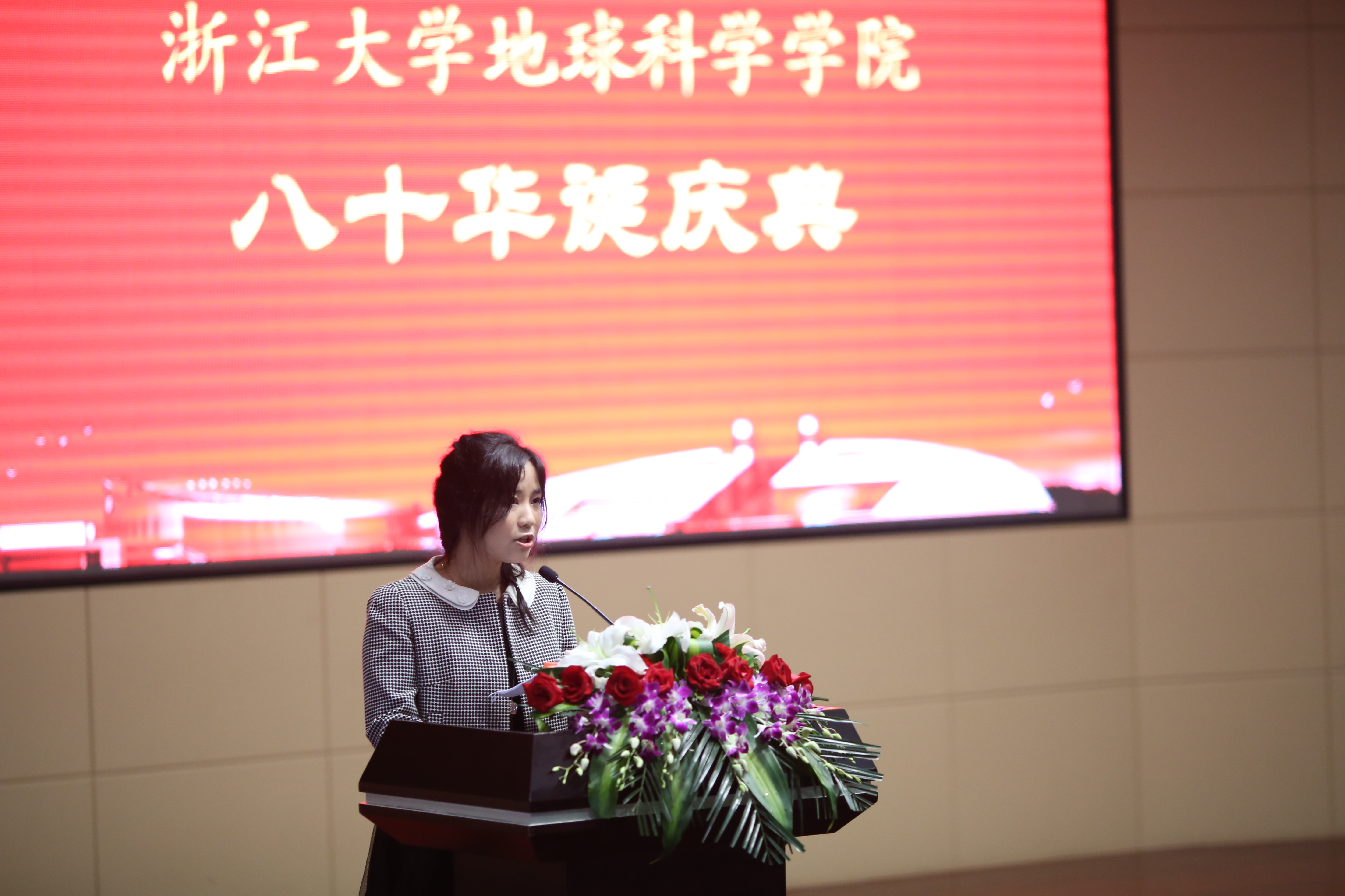 庆典大会上,校友代表88届地质专业吴能友研究员、在职教师代表76届大气科学专业翟国庆教授、在校学生代表15级人文地理专业博士研究生张天舒同学依次上台发言;96届地质班还向学院赠送了写有“心血栽培栋梁材,桃李繁盛四海春”的书扁,副院长沈忠悦教授代表学院接收了礼品;随后4位教师代表方龙龙、陈宁华、苏程、黄道朗诵了威尼斯官网人文地理范今朝老师创作的诗词《浙大地学赋》,把大会的气氛推向了高潮。他们热情洋溢的演说和感人至深的举动,都透露出他们对于学院的深厚的感激之情和眷恋之意。