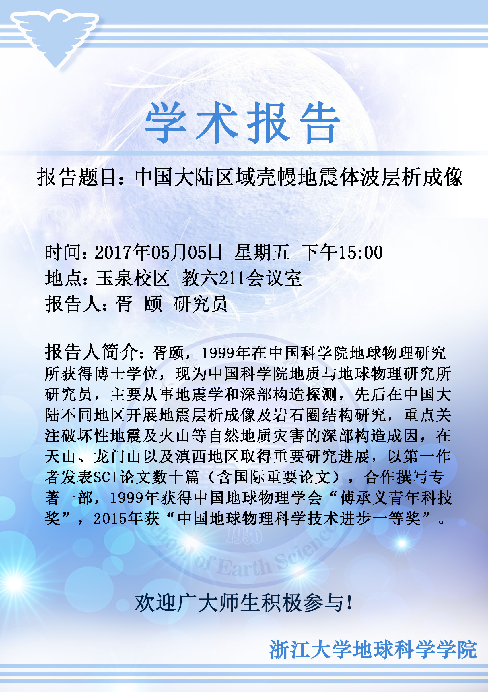 中国科学院地质地球物理研究所胥颐研究员学术报告通知
