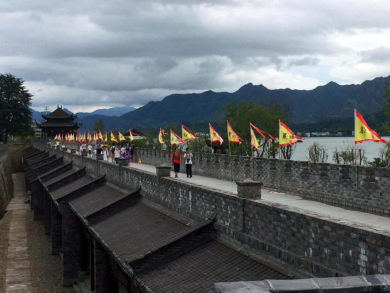 告别七里扬帆,匆匆掠过梅城古镇,粗览了梅城的严州古城墙。古迹多倾圮,现代人加以重修,又在面江一侧开辟了广场走道。城墙幽幽,江水悠悠,远处江心岛上的古塔似乎述说着人们对这一方山水永远的挂怀与依赖。