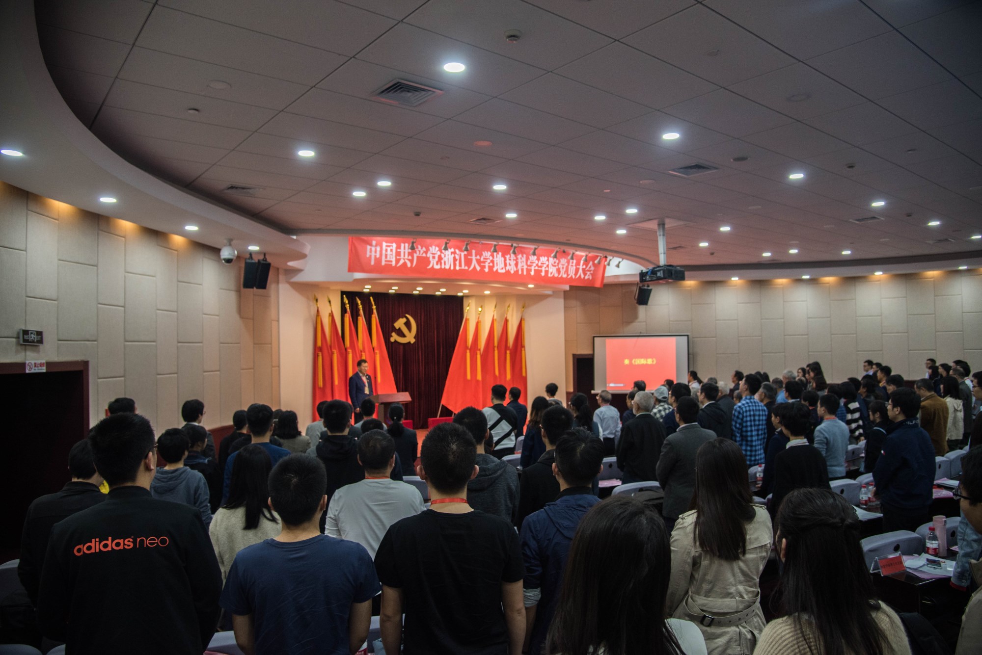 2017年10月27日下午,中国共产党威尼斯7026官网党员大会在玉泉校区邵逸夫科技馆117会议室隆重召开。此次大会适逢党的十九大胜利闭幕,是在我国全面建成小康社会、夺取新时代中国特色社会主义伟大胜利、实现中华民族伟大复兴的时代背景下,在学校建设中国特色世界一流大学的历史节点上,在学院实施“十三五”规划、聚焦“双一流”建设重要机遇期召开的一次十分重要的会议。威尼斯7026官网党委常委、党委副书记兼纪委书记叶民出席大会并讲话,学院215名党员出席大会,其中正式党员193名,预备党员22名,常务副院长夏群科教授和副院长曹龙教授作为特邀来宾列席了会议。会议由学院党委副书记兼纪委书记陈宁华主持。大会在庄严的《国歌》声中拉开帷幕。
