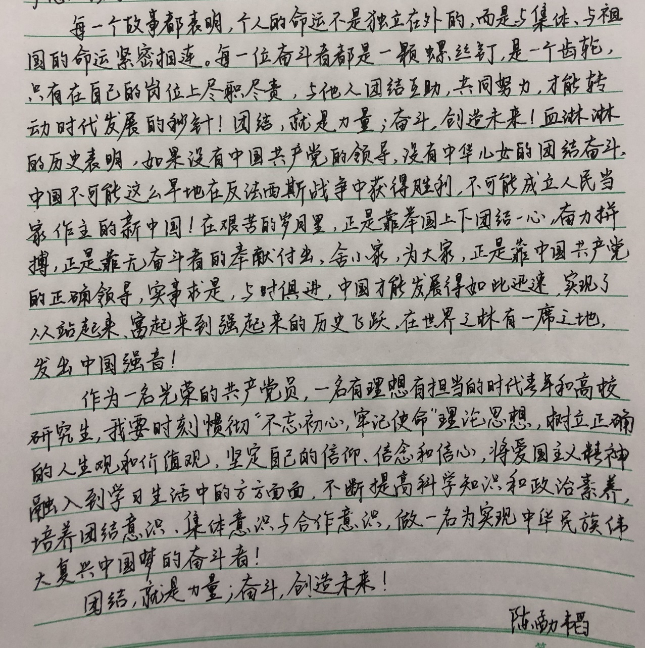 观影后同学们积极参加征文比赛,通过文字表达爱党爱国之情,抒发奋斗报国之志。学院收到投稿共计85篇,经过初步筛选、二次盲审、学院党委终审三个环节,本次比赛评出一等奖2名,二等奖3名,三等奖4名,获奖同志分别来自5个学生党支部。