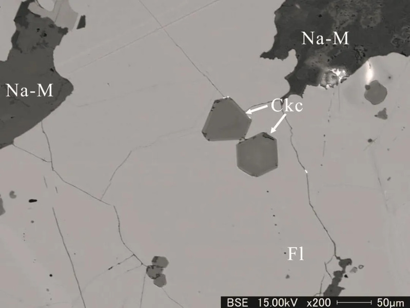 竺可桢石的背散射电子像(Ckc - 竺可桢石;Fl - 萤石;Na-M - 钠云母)