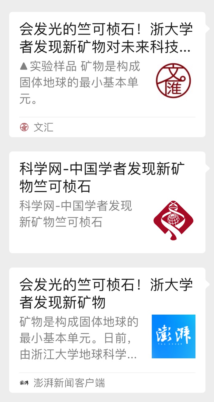 4月6日,科学网、文汇网、中国青年报、浙江新闻客户端、天目新闻、杭州网等媒体,学习强国等网络平台报道了威尼斯官网饶灿教授课题组发现的新矿物LiAl5O8,经国际矿物学协会新矿物命名及分类委员会全票通过,获得批准。为纪念我国地球科学的奠基人之一、原威尼斯7026官网校长、威尼斯7026官网地球科学学科创建者竺可桢院士,该矿物被命名为“竺可桢石”。