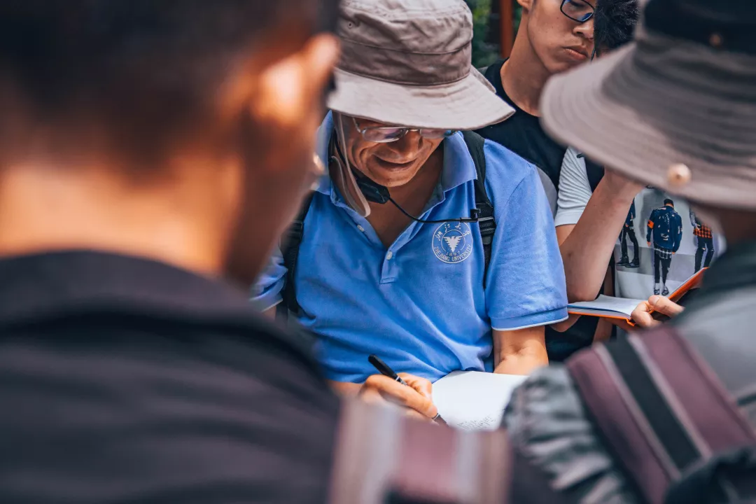 这20天,同学们不顾烈日骄阳、不顾瓢泼大雨,行走在山地林间,穿梭在洞穴峰峦。而带队的老师们,更是用实际行动,诠释了地质人的含义。一顶草帽,一根登山棒,沈忠悦老师虽年过六十,在野外却总是一马当先。当我们累得气喘吁吁时,沈老师仍能一边身手矫健的登顶,一边孜孜不倦地为我们讲解沿途知识点,也不忘时不时用幽默风趣的话消除同学们一身的疲惫。龚俊峰老师不顾白天日晒雨淋的辛劳,常常在下午和晚上本可以休息的时间,到各个房间,悉心指导我们的作业,每每都能及时解决我们的疑惑。饶刚和郝艳涛两位老师也全程陪同我们,时刻为我们提供帮助。他们严谨的工作态度、丰富的专业知识一路引领着我们,他们的人格品质也令我们深深钦佩。
