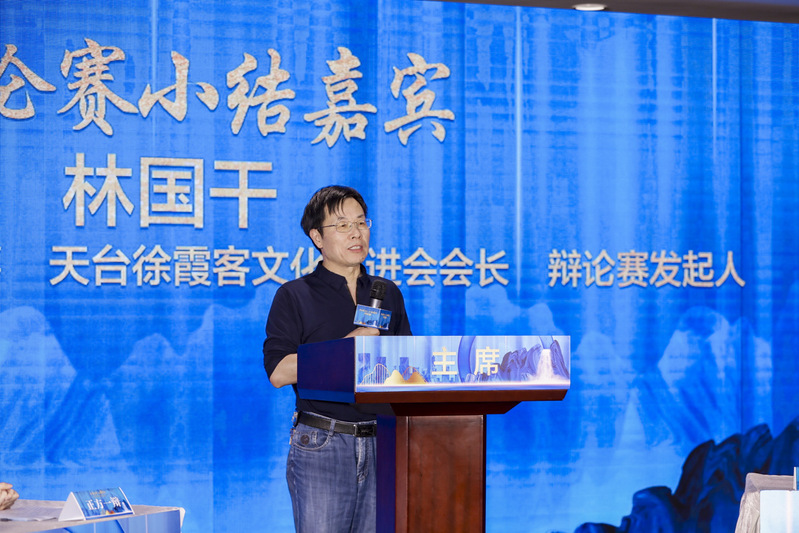 中国徐霞客研究会常务理事、天台徐霞客文化促进会会长林国干,作为本次辩论赛的发起人做总结发言。他希望通过主题辩论赛和“放假”这一话题,吸引更多人关注中国旅游日,从而关注徐霞客文化,同时也更关注天台山——《徐霞客游记》的开篇地。