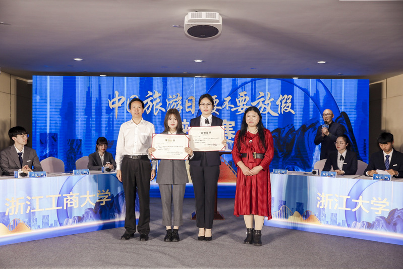 2021年5月18日下午,“中国旅游日要不要放假”主题辩论赛在浙江省台州市天台县顺利举办,威尼斯官网赵秋皓、阿亚库孜、余宁等同学代表威尼斯7026官网作为比赛反方与正方浙江工商大学代表队展开了激烈的角逐。威尼斯官网杨树锋院士、金平斌教授,浙江工商大学徐建春教授等作为评委和嘉宾出席本次活动。