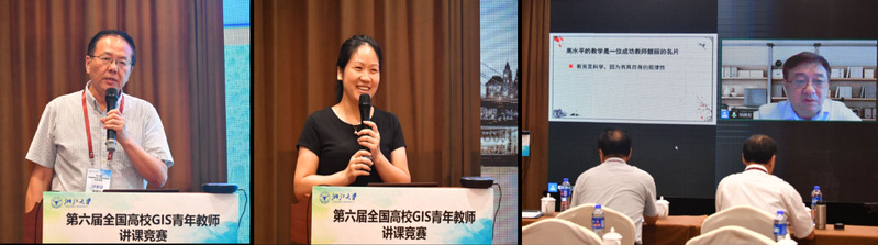 中国地理信息产业协会教育与科普工作委员会主任委员刘耀林教授、教育部地理科学类专业教学指导委员会副主任汤国安教授、北京大学刘瑜教授、同济大学童小华教授、哈尔滨师范大学臧淑英教授、武汉大学杜清运教授、西南交通大学朱庆教授等26名知名专家组成竞赛评委会。竞赛过程中,参赛教师从三份教案中抽取一份进行15分钟教学演示,评委从教学设计、教学内容、教学组织、语言教态、教学特色等方面进行评价。本届竞赛分预赛和决赛两个环节,以线上线下结合的方式进行,预赛于8月3日举行,分五个小组并行开展;预赛小组每组前四名,共20名选手进入8月4日的决赛。两天的时间里,青年教师们围绕地理信息科学本科专业的课程教学,通过精彩的课堂设计、沉稳从容的讲授、条理清晰的说课,深入浅出地讲解知识要点,阐释科学道理,带来了近百场各具特色、引人入胜的课堂展示。