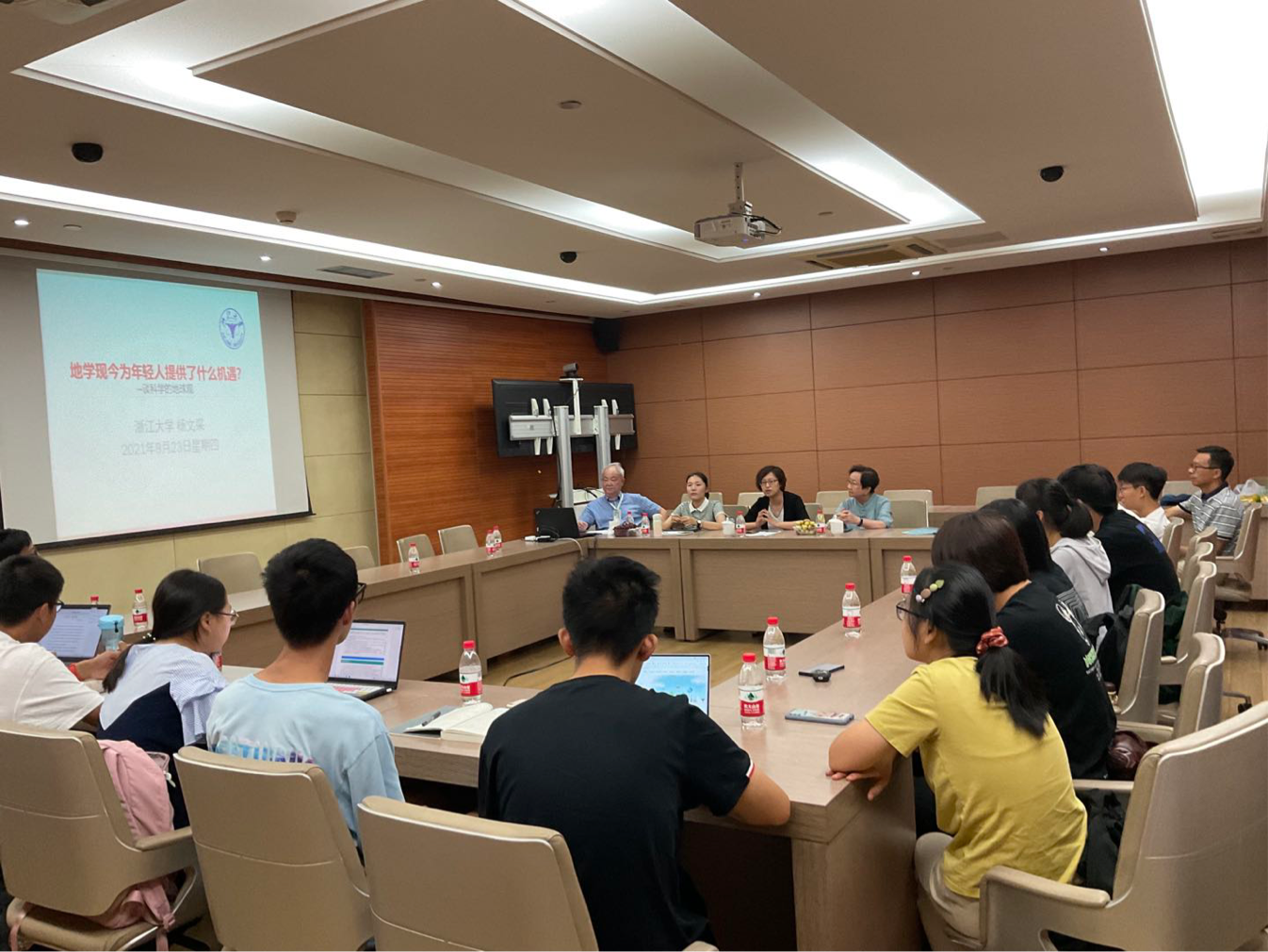 9月25日上午9点,学院师生交流日之杨文采院士有约活动在紫金港校友楼玉泉厅举办,学院党委书记王苑、2020级地质学(求是科学班)班主任张宝华、2021级地质学(求是科学班)班主任杨蓉参加了活动。杨文采院士就“地学为现在年轻人提供了什么机遇”的主题为2020级、2021级求是科学班的同学介绍地学发展现状,指导未来发展方向的选择。