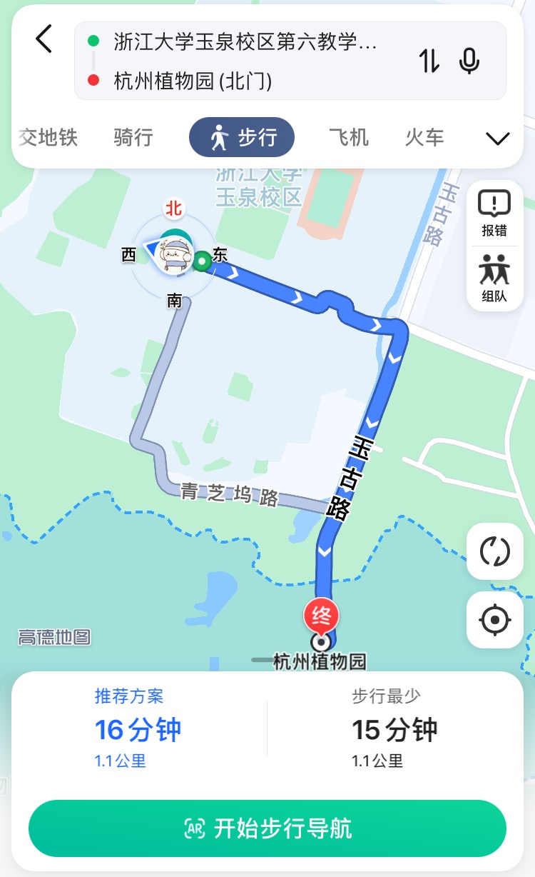 活动路线:玉泉校区第六教学楼正门至植物园北门
