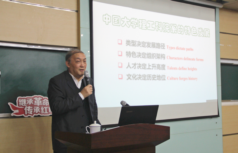 在阐述了四大背景后,杨卫院士着重从中国大学理工科院系特色发展的角度,阐释了地科学院应如何以地学为本,让科学导航,助力学科建设,实现高质量发展。顶尖高校的案例,用具体详实的数据、生动的语言,深入浅出地对每一层境界进行了解读,同时还分析国内顶尖高校当他以长城地貌为喻,将学科建设从低到高分为六层境界,即特征学-动力学-统计学-生态学-教育学-哲学,并结合国内外前所处的阶段与未来的发展方向。
