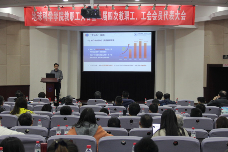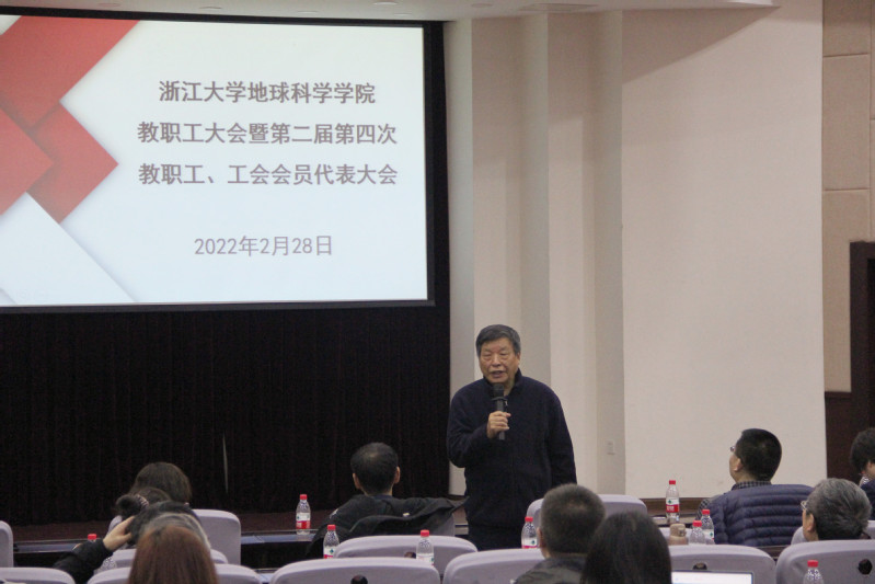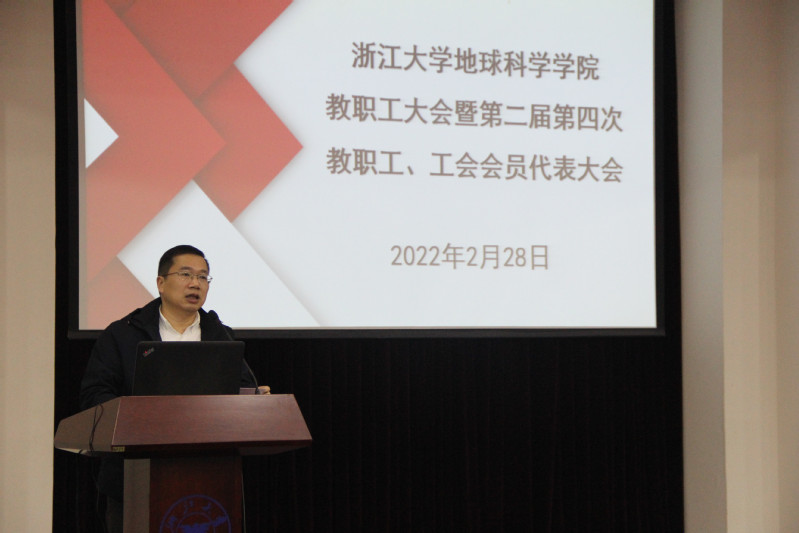 院长夏群科作题为“新时代浙大地科的使命愿景”的工作报告。他向与会教职工们介绍了学院在“十三五”期间取得的发展成效和“十四五”的建设思路。他表示,通过全体师生的不懈努力,不断强化“以高水平科学研究带动人才培养和社会服务”的发展理念以及确立“环青藏高原盆山体系”和“城市地下空间”两个重点发展领域,学院科研质量显著提升,并且在国家级平台筹建、国际合作、人才培养和学院治理等方面都取得了突出的成绩。他指出,“十四五”期间,学院将坚持1个中心任务、2个重点领域、3个支撑平台、4个学科融合、5个优先方向的总体发展思路建设一流地学,以建成大数据与地球系统科学的创新研究和人才培养基地为愿景,以通过大数据与地球系统科学领域高质量的科学研究培养未来的一流地球科学家为使命,以“地学之爱”为价值引领,齐心协力使浙大地科登上新台阶。