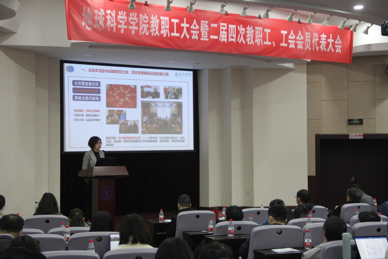 党委书记王苑以“心怀‘国之大者’,强化政治功能——推动学院党的建设和事业发展深度融合”为题总结2021年工作,部署2022年重点任务。2021年是党和国家历史上具有里程碑意义的一年,学院通过开展党史学习教育、举办“地学强师”和“先锋学子”教育培训,以及“我为群众办实事”“新发展阶段使命愿景大讨论”等系列活动,充分发挥党史学习教育在铸魂育人中的价值。2022年是新时代新征程中具有特殊重要意义的一年,迎接学习宣传贯彻党的二十大是今年一项最为重要的政治任务,学院将继续加强基层组织建设和优秀干部人才一体化培养,构建地学特色育人体系,弘扬“地学之爱”的精神文化,推动全面从严治党向基层向纵深发展。在新的一年以更坚定的理想信念肩负使命担当,以更强烈的历史主动精神建设一流地学,以更有力的实际行动和更优异的发展成效迎接党的二十大胜利召开。