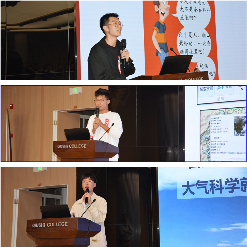 随后,地质学、地理信息科学、大气科学三个专业优秀学生代表向同学们分享了自己对于各自专业的个人理解与学习历程。