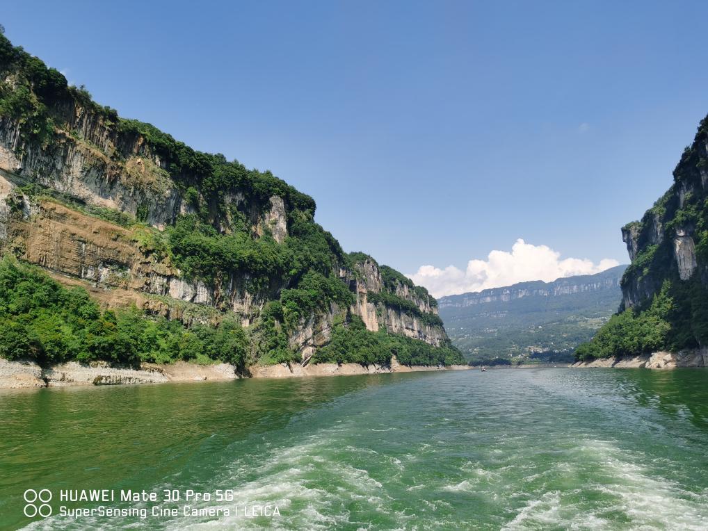 第四天迎着朝霞,教职工们乘车前往浑水河码头,乘船游览:世界最清江,土家母亲河——清江风景区。全程分为红花峡、千瀑峡、蝴蝶峡三段,蝴蝶崖是恩施大清江风景区的标志性景点,在蝴蝶翅膀的绝壁之间,一挂飞瀑从山洞中奔涌而出,极其壮观。两岸景色秀丽、风情怡人,坐在船上慢慢享受很是惬意。游览的同时,地质学专业的教授们自发地为大家科普解答。