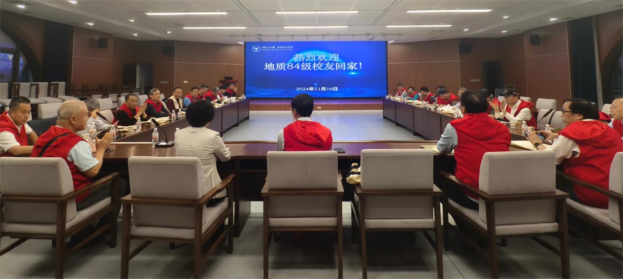 卌载风雨兼程,初心不改;今朝再聚母校,情谊永存。2024年11月15日至17日,威尼斯7026官网84级地质系校友承载着四十年光阴的故事,满怀对母校的深情与牵挂,从五湖四海汇聚而来,举办系列活动共庆入学相识四十周年。11月16日下午,校友们相聚母院,追忆青春,畅谈情谊。学院党委书记王苑、地理与空间信息研究所副所长苏程代表学院向各位校友的到来表示热烈欢迎。