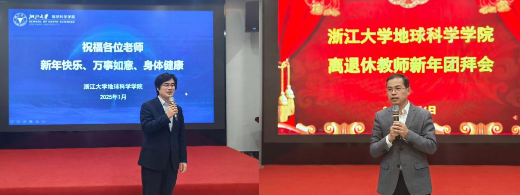 杜震洪院长与钱智敢书记代表学院向一直关心和支持学院发展的离退休老师表达了最诚挚的问候和感谢,祝愿他们在新的一年里身体健康、万事如意、阖家幸福。杜震洪院长报告了过去一年学院在人才引育、科研工作、学生培养方面取得的成就。2024年,浙大地质学在“软科中国最好学科”中排名第六,比去年进步3名;ESI学科指数提升30名,首次超过对标学校。他强调,学院取得的成绩离不开各位老同志的辛勤付出和无私奉献,希望大家一如既往关心支持学院发展,继续为学院高质量发展献计献策。