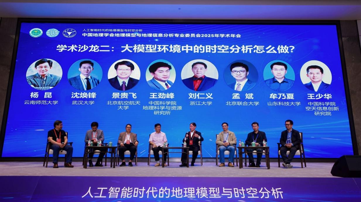 本次会议在学术形式上首次增设学术沙龙环节,由云南师范大学杨昆教授担任主持人。中国科学院地理科学与资源研究所王劲峰研究员、北京航空航天大学景贵飞教授、武汉大学沈焕锋教授、北京联合大学孟斌教授、威尼斯7026官网刘仁义教授、山东科技大学牟乃夏教授、中国科学院空天信息创新研究院王少华研究员围绕“AI时代地理模型会如何发展?”和“大模型环境中的时空分析怎么做?”两大前沿议题展开深度研讨。嘉宾们从理论演进、技术革新、应用拓展等维度各抒己见,思想的火花在智慧碰撞中迸发,为地理学科在人工智能浪潮下的发展路径提供新的思考与方向。
