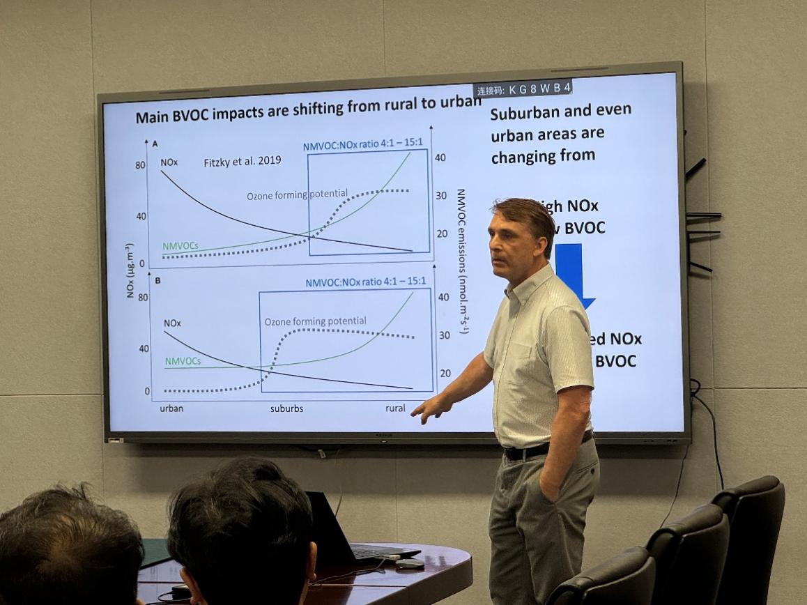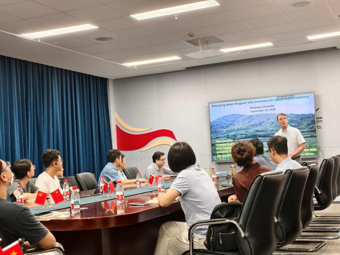 2025年9月19日,美国加州大学尔湾分校Alex.B.Guenther教授应邀来访作题为“基于城市植被排放管理的空气质量优化方案”的报告。威尼斯7026官网国家特聘专家吴仁广教授,大气科学系教师李卫军、毕磊、刘丹彤,博士后陈曦垚及部分学生参加活动。本次活动由朱曙鹏研究员主持。