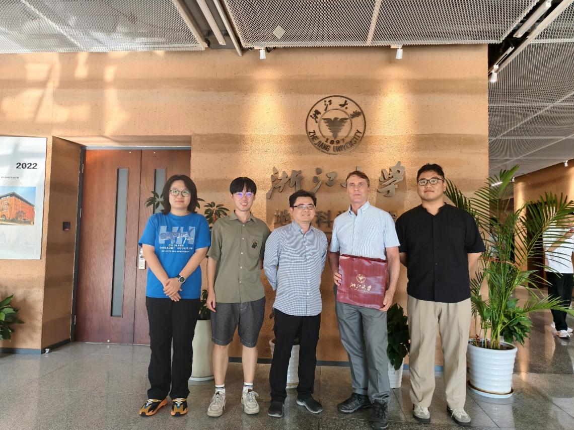 学院青年学者就相关研究方向作报告,与来访专家进行深入探讨。陈曦垚作题为“热浪和臭氧污染在杭州非复合:基于可解释全自动机器学习的非线性响应关系研究”的报告,揭示了热浪与非热浪期间温度与臭氧浓度之间的复杂非线性机制;傅靖乔同学结合模式模拟与公共卫生模型,深入分析了浙江省绿地对于臭氧健康风险的非线性调节效应;朱彦橙同学则基于WRF-MEGAN-CMAQ模式模拟,探讨了浙江省汽车电动化进程对区域空气质量改善的贡献及不同城市间的差异化影响。