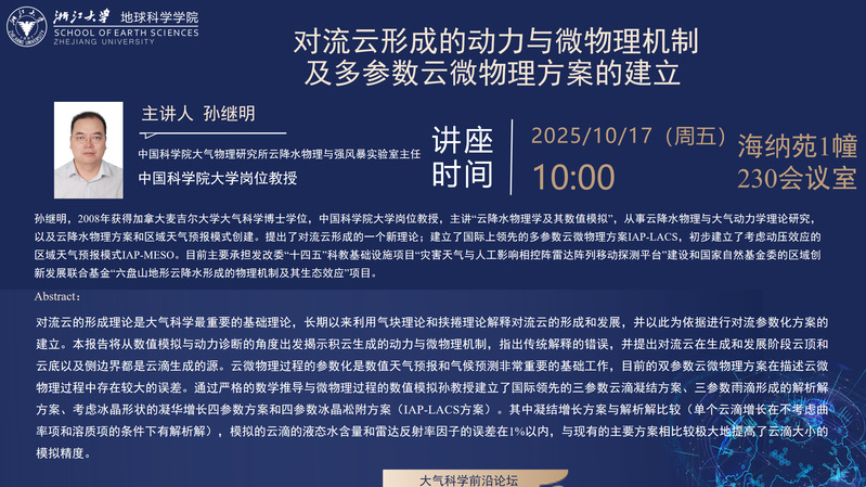 【大气学术讲座】对流云形成的动力与微物理机制 及多参数云微物理方案的建立