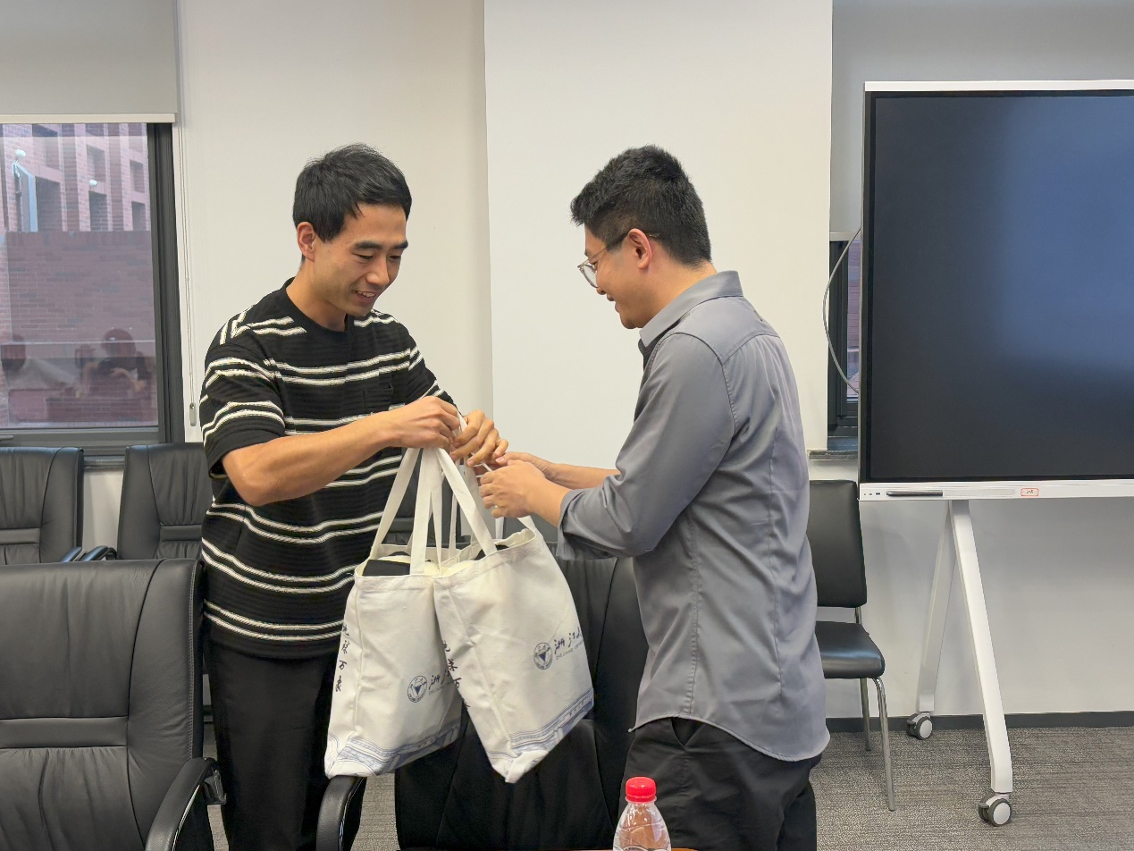 活动尾声,地科学院团委副书记、辅导员尹启航老师为顾昱骅、郭彬两位嘉宾送上学院纪念礼品,以表感谢。