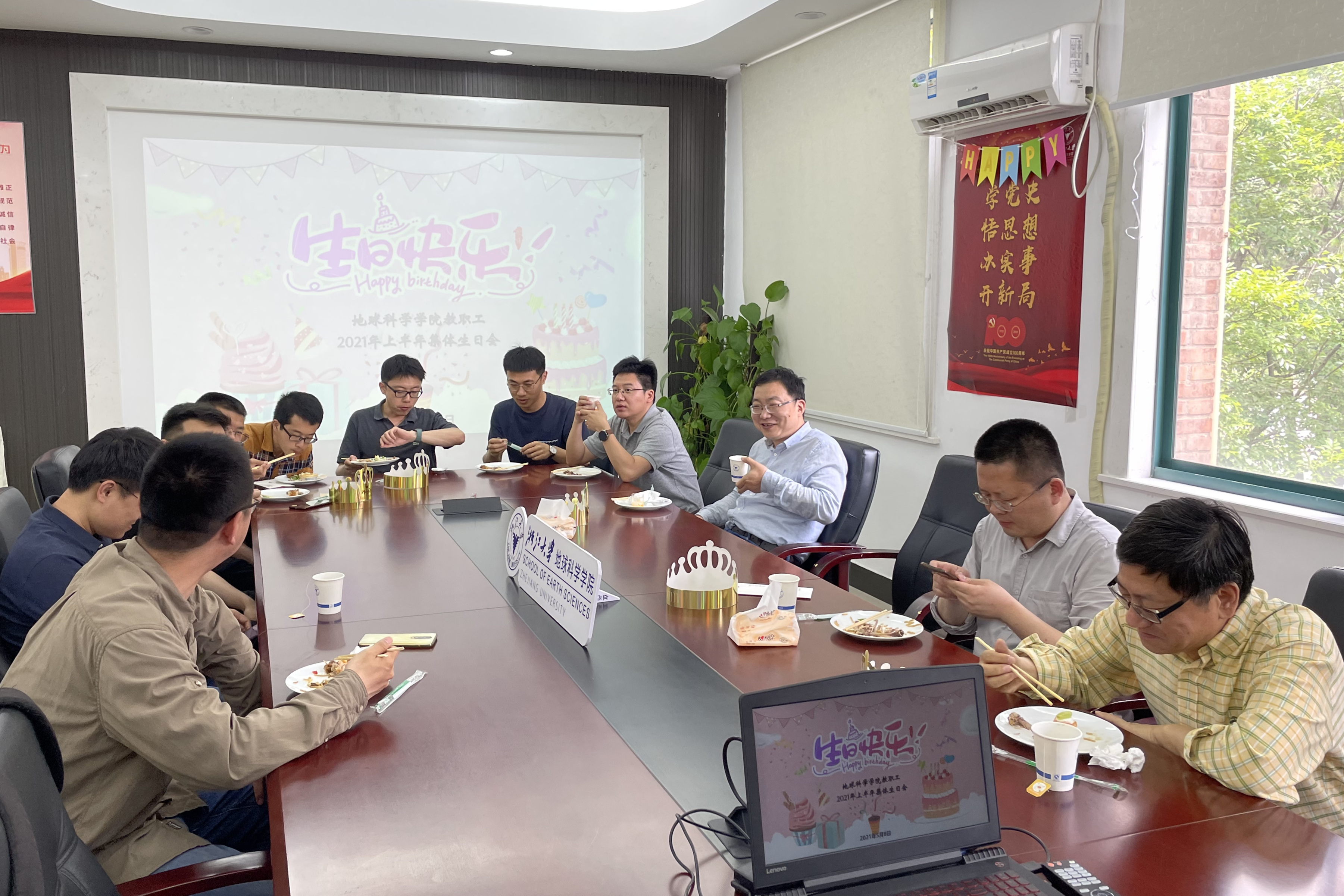 5月8日中午,地科学院工会在玉泉校区教六311教工之家举办了2021年上半年教职工集体生日会。学院工会为寿星们准备了丰盛的生日餐,精致的西点,美味的菜肴,得到老师们的连...