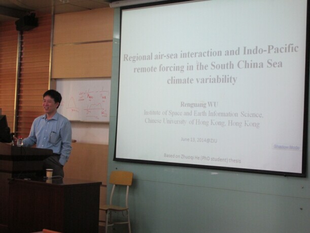 2014年6月13日上午,来自香港中文大学的吴仁广教授在玉泉校区第六教学楼203报告厅为我系师生带来了一场主题为”Regional air-sea interaction and Indo-Pacific remote for...